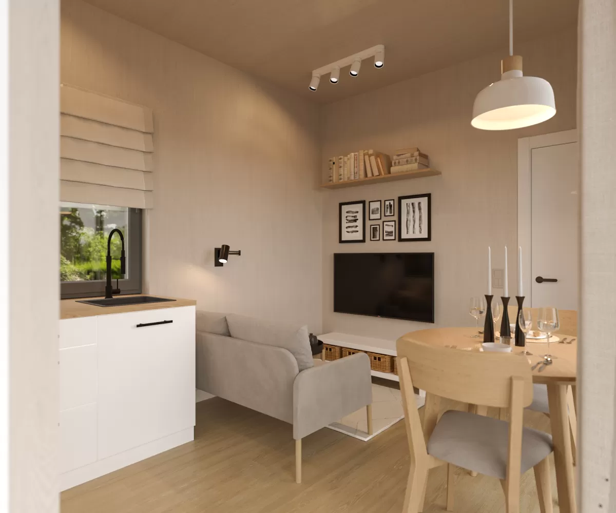 Das Modulhaus Design Nordic überzeugt mit 24 m² effizient geplanter Wohnfläche, moderner Ausstattung und hochwertiger Bauweise. Nachhaltige Materialien, energieeffiziente Technik und ein durchdachtes Raumkonzept garantieren Komfort, Langlebigkeit und höchste Qualität.